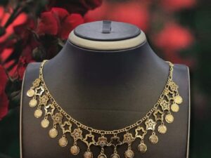 عقد مطلي بديل الذهب بحلقات دائريه وفصوص ملونه