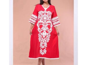 جلابيه نسائيه احمر مطرزه بخيوط ابيض