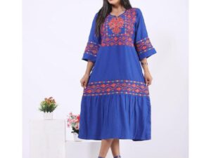 جلابيه نسائيه ازرق مطرزه بخيوط