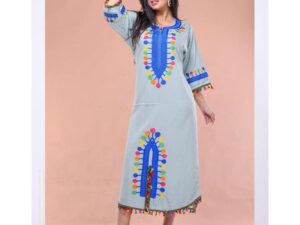 جلابيه نسائيه رمادي فاتح مطرزه بخيوط ملونه