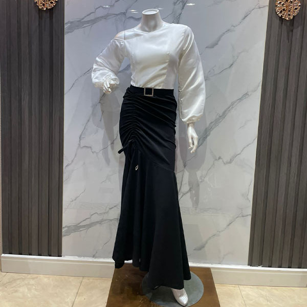 Be the first to review “فستان ابيض واسود صدريه تفته سله مع كريب استرتش” إلغاء الرد